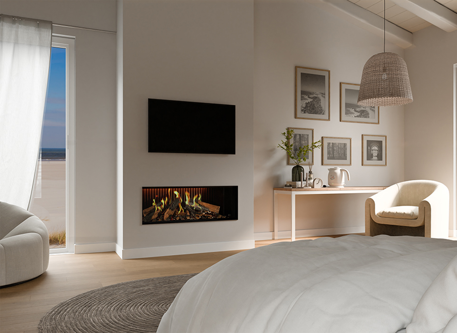 De unieke Evolve Flame technology -met opnames van echt houtvuur- in combinatie met het met houtsnippers gedecoreerde gloeibed zorgt voor een zeer realistische houtvuurbeleving. Daarnaast heeft de haard dankzij het warmte-element van 1 tot 2 kW ook een verwarmingsfunctie. Lage en brede afmetingen maken de haarden zeer geschikt voor de populaire cinewalls. Zo is de DRU Virtuo Evolve altijd een stijlvolle toevoeging aan uw interieur.