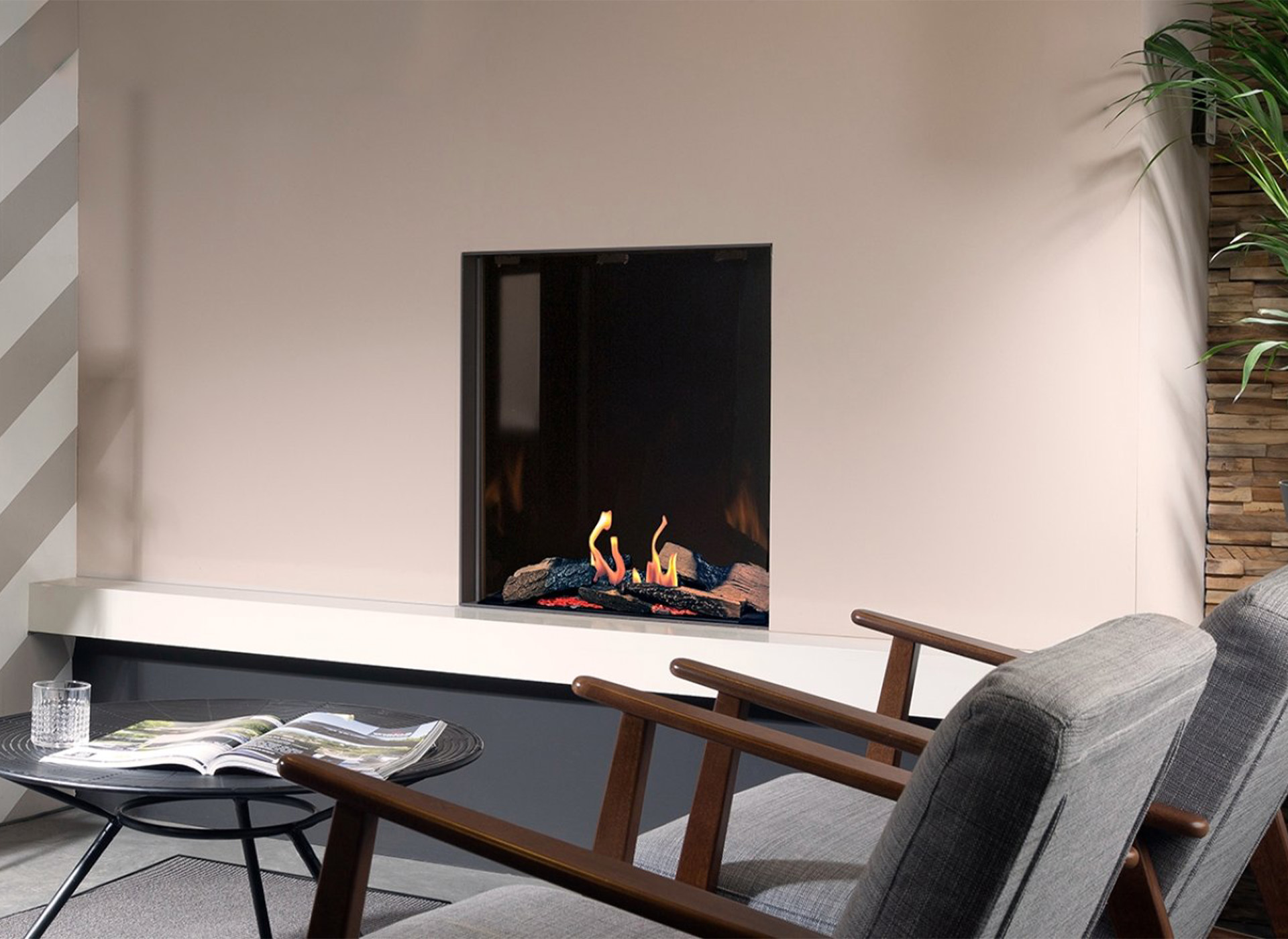 Zonder gasaansluiting of schoorsteen is de haard eenvoudig te installeren en geschikt voor zowel binnen- als buitengebruik. Ideaal voor wie sfeer, duurzaamheid en flexibiliteit wil combineren. Uiteraard is de haard ook met afvoer (gesloten systeem) te installeren.