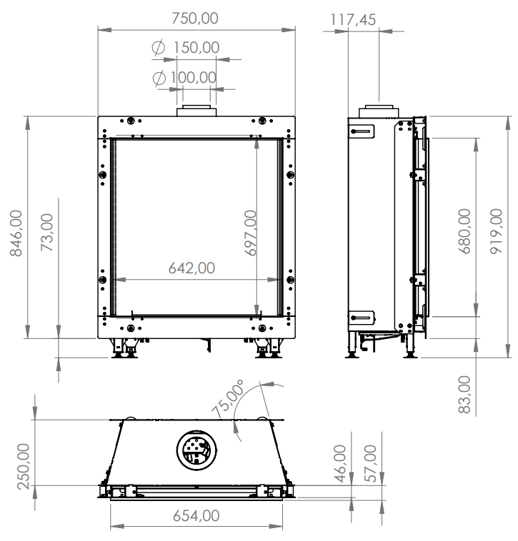 | Rookgasafvoer (diameter) | 100/150 millimeter |