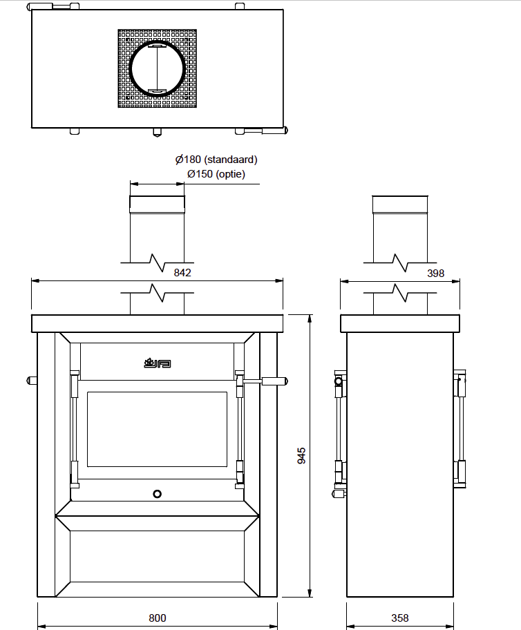 | Rookgasafvoer (diameter) | 180 millimeter |