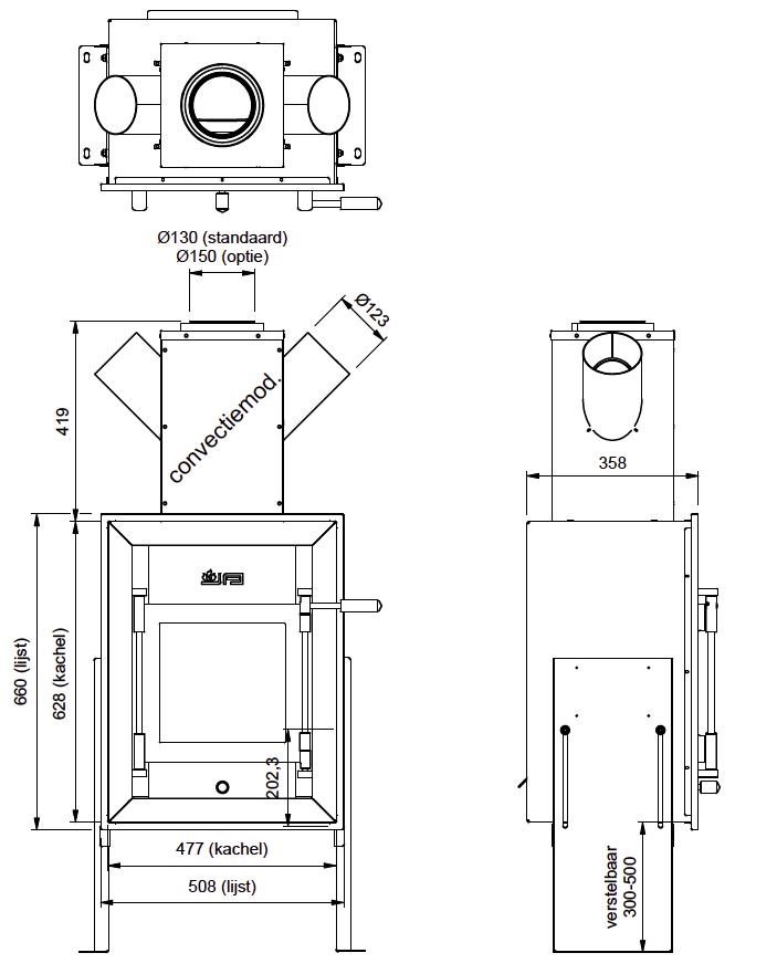 | Rookgasafvoer (diameter) | 130/180 millimeter |