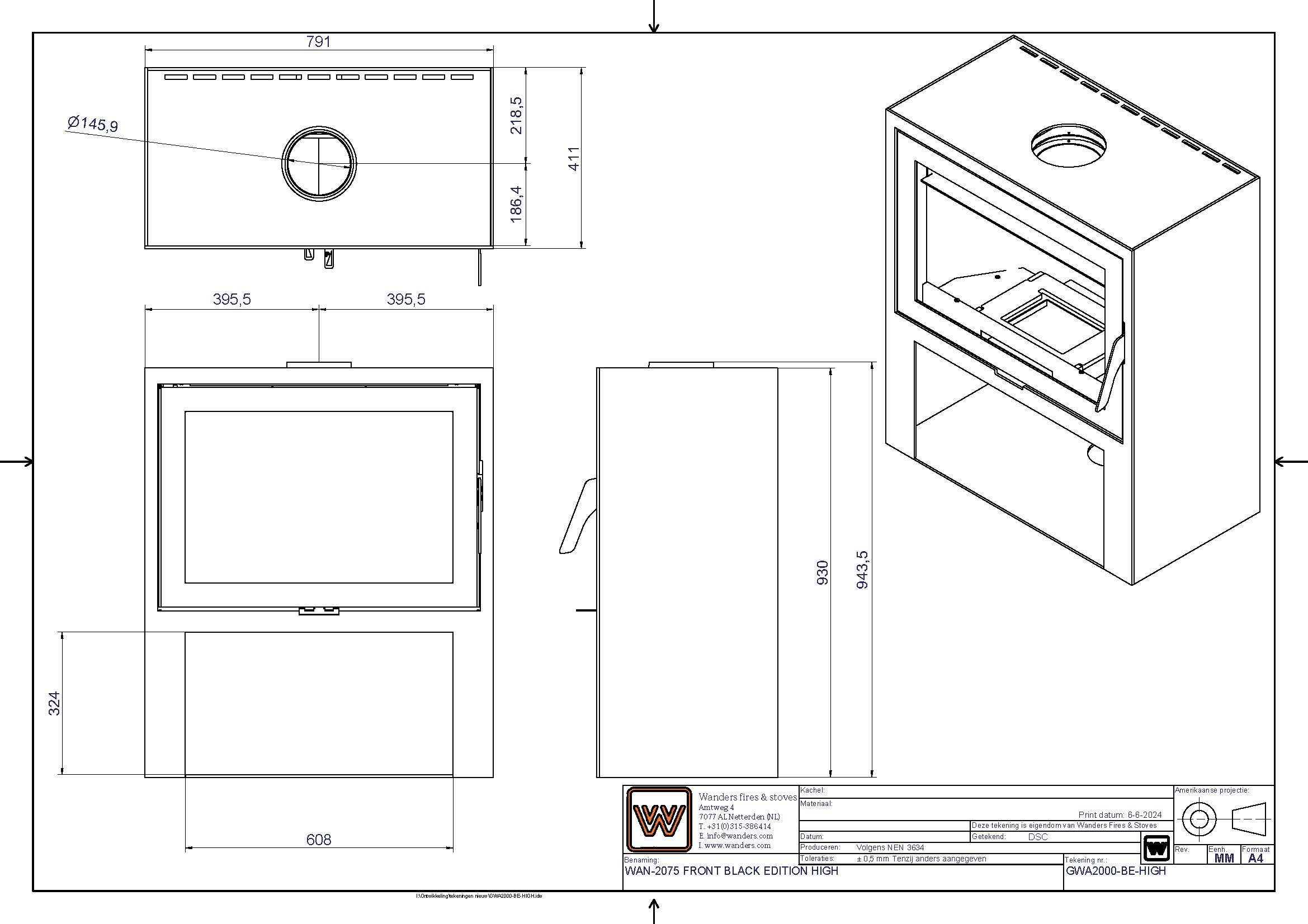 De Wanders WAN 2075 Black Edition High is een vrijstaande houtkachel met een moderne uitstraling en een rechthoekig ontwerp. Het is gebaseerd op de WAN 2075 Front inzethaard, omgeven door een stijlvolle stalen mantel.